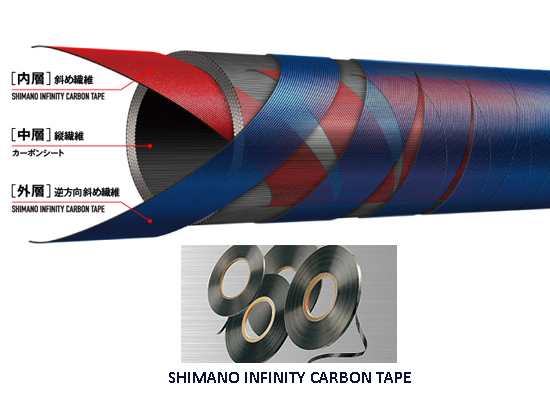 - "X-Spiral” : sử dụng dải băng carbon quấn lõi cần theo hình chữ X thay vì sử dụng tấm sợi carbon. Cụ thể như sau: