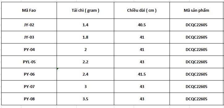 - Độ dài Fao: 40.5 ~ 43 cm
