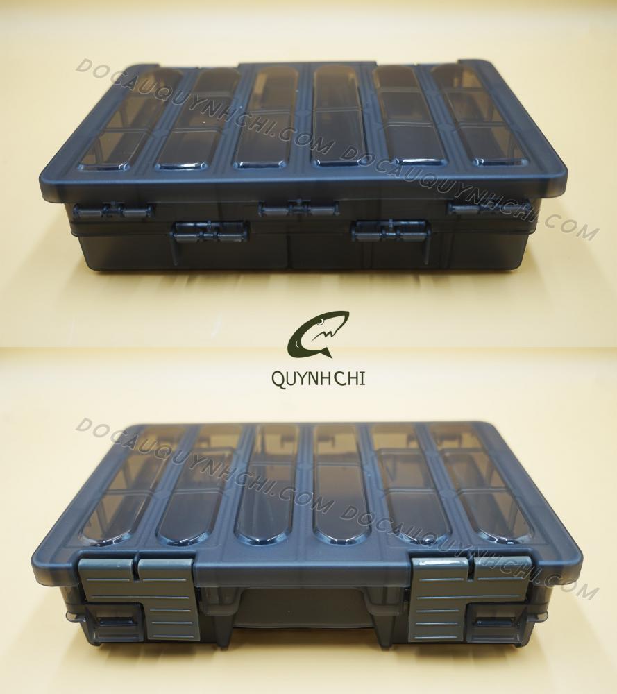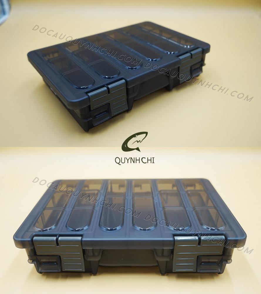- Hộp có 2 ngăn, 11 ô lớn (có các miếng ngăn để người dùng tự chia theo ý muốn) để đựng các món như: phao nhỏ, mồi giả to, ….