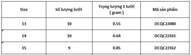 Số lượng: 9 ~ 10 lưỡi / vỉ
