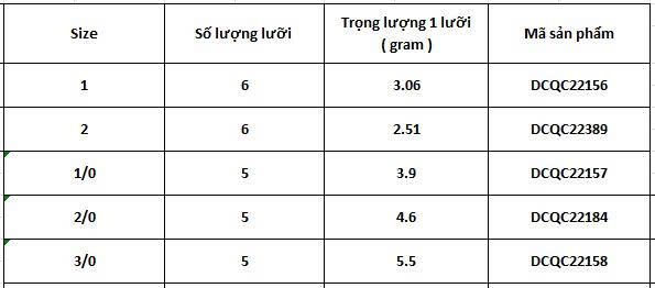 Size: 1 – 2 - 1/0 – 2/0 – 3/0