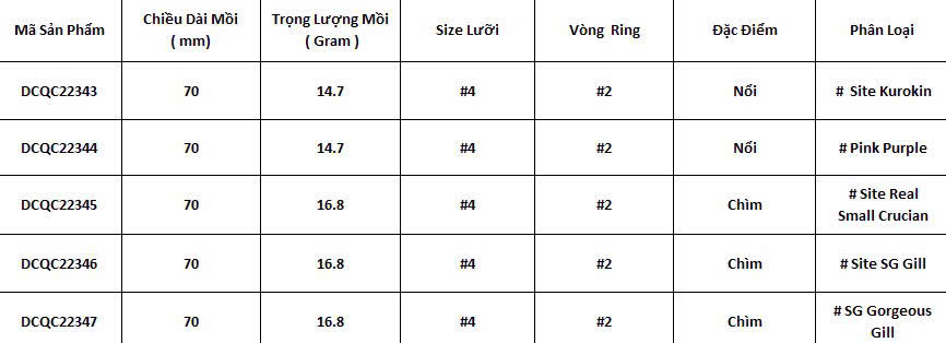 Trọng lượng: 14.7g ( mồi nổi )