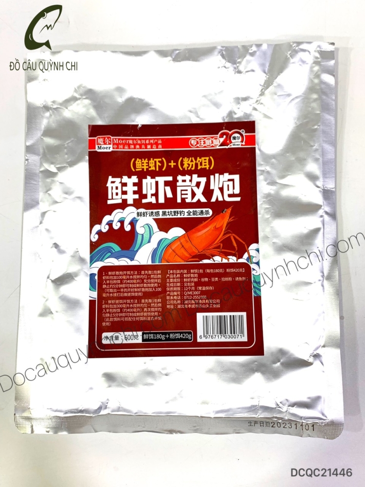 Trong gói sản phẩm có 2 gói, 1 gói tôm tươi và 1 gói mồi bột.
