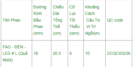Đường kính bầu phao: 18mm